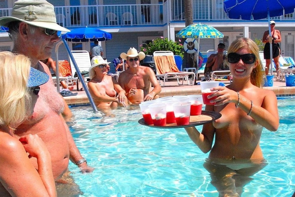 Molly had been working at the pool for couple of years and Tom had taken it upon himself to make sure that she was the best shot girl in town. He had even gone so far as to make her the official Bare Pool nude shot girl. Molly was flattered and a bit embarrassed but she went along with his plan.